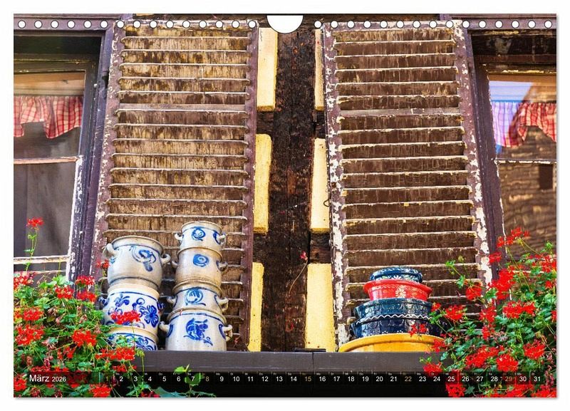 März: Hausdetail mit elsässischen Töpferwaren