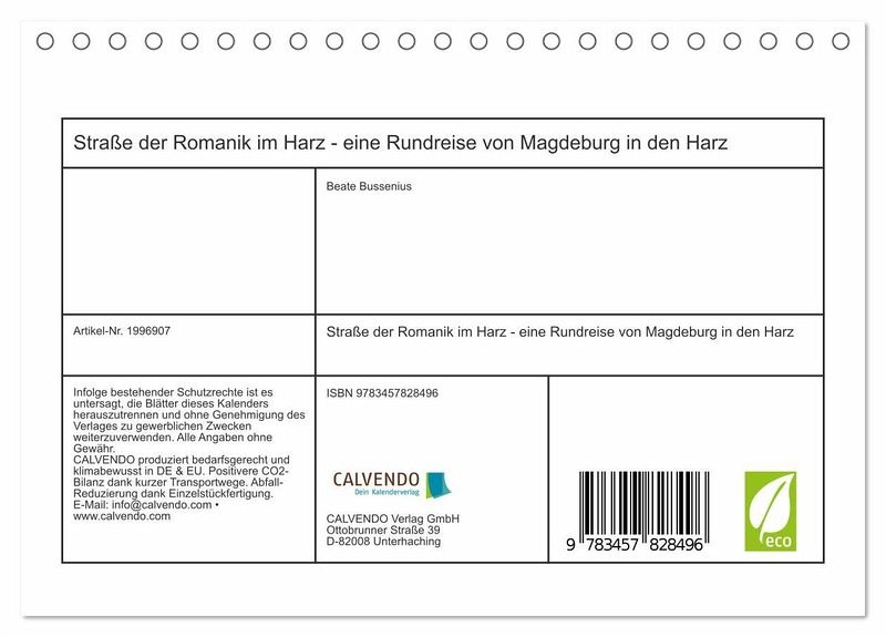 QUALITÄT - Hochwertiger Fotokalender mit 12 wunderschönen Motiven auf lichtbeständigem Bilderdruckpapier, robuste Spiralbindung.NACHHALTIG - deutliche Abfallreduzierung durch bedarfsgerechte Einzelstückfertigung, umweltfreundliches FSC-zertifiziertes Papier, Produktion in Deutschland, klimabewusste Logistik.PERFEKTES GESCHENK - Kalender für Freunde und Familie, für Kinder und Erwachsene, jung und alt, zu Weihnachten, Geburtstag oder zwischendurch.VIELFALT - Bildkalender in verschiedenen Formaten, z.B. DIN A5, DIN A4, DIN A3 sowie DIN A2. Ob Naturmotiv, Gemälde oder Fotos, ideal für ein persönliches Wohlfühlambiente.Die Straße der Romanik führt im Harz an geschichtsträchtigen Klöstern und Kirchen vorbei. von Autor(in): Fotine