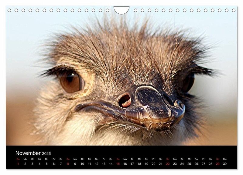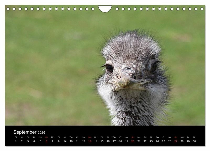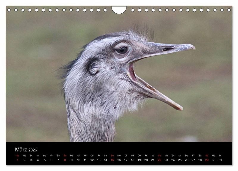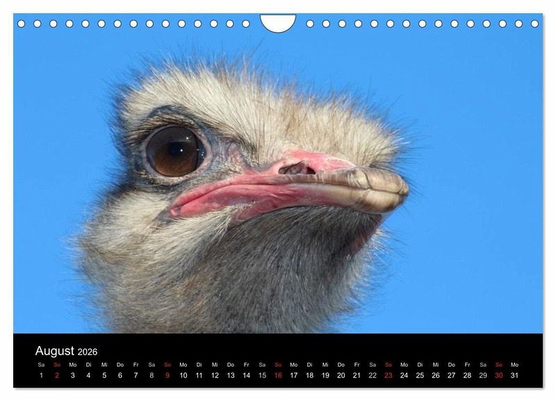 Ein Kalender über die verschiedenen Mimiken und Gesichter von Straußen-Vögel. Mal frech, mal neugirig, mal lustig,mal fragend, so wiederspiegeln diese Bilder die verschiedenen Gesten dieser so sympatischen Groß-Vögel.