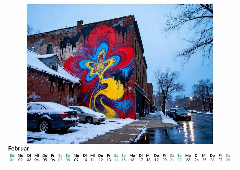 Wo graue Fassaden zu Leinwänden werden und Gassen sich in Galerien verwandeln, pulsiert die kreative Energie der Stadt. Der Kalender "Street Art & Graffiti-Kunst" fängt die Essenz dieser urbanen Kunstform ein und bewahrt ihre Ausdruckskraft für das ganze Jahr. Dieser Kalender ist eine ideale Wahl: * Für Liebhaber urbaner Ästhetik und moderner Kunst. * Für alle, die ihre Räume mit kreativen und unkonventionellen Motiven gestalten möchten. * Als besonderes Geschenk für Freunde von Graffiti und Murals. Jeder Monat präsentiert ein einzigartiges Kunstwerk, das den Geist der Street Art aufgreift. Von großflächigen Murals, die ganze Gebäudefronten einnehmen, bis hin zu detailreichen Stencils und dynamischen Schriftzügen. Die Motive wurden durch einen digitalen Schöpfungsprozess entwickelt, der die Stile urbaner Kunst interpretiert und neu zusammensetzt. So entsteht eine Sammlung, die vertraut und zugleich völlig neu wirkt. Mit dem Kauf dieses Kalenders kann man Folgendes erwarten: * Zwölf sorgfältig ausgewählte Motive aus der Welt der urbanen Kunst. * Ein praktisches Kalendarium, das den Blick auf das Wesentliche lenkt. * Ein visueller Begleiter durch das Jahr, der Wände belebt. Der Kalender "Street Art & Graffiti-Kunst" ist eine Hommage an die Kreativität, die im Verborgenen blüht und öffentliche Räume in Kunstwerke verwandelt. Eine Einladung, die Vielfalt der Street Art Monat für Monat zu entdecken.