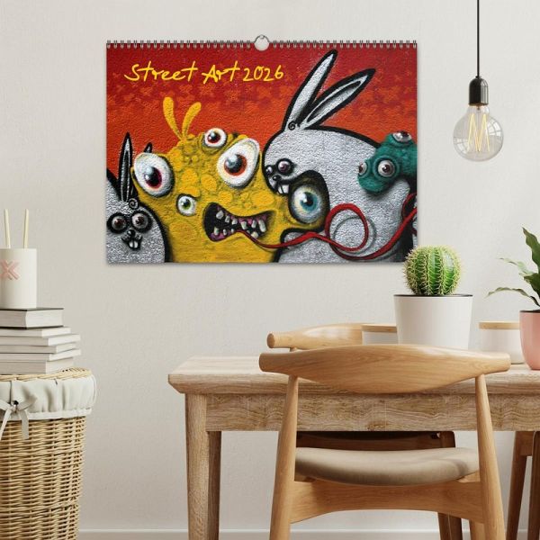 Als Street-Art wird eine nichtkommerzielle zeitgenössische Form der Kunst im öffentlichen Raum bezeichnet, die häufig illegal, "ungefragt" und anonym entsteht. Die Künstler bedienen sich dabei verschiedenster Medien, um ihre Werke zu präsentieren. Gestaltet werden zumeist vorhandene Flächen wie Wände, Stromkästen, Laternen, Verkehrsschilder, Telefonzellen, Mülleimer und andere Stadtmöbel. Dieser Kalender zeigt einige Beispiele der im Bereich Street-Art anzusiedelnden Kunstformen.