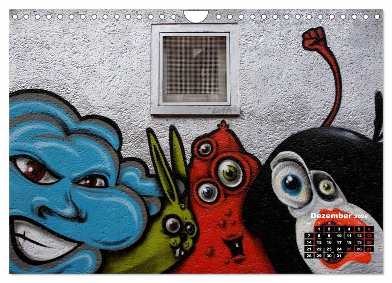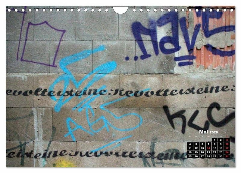 Als Street-Art wird eine nichtkommerzielle zeitgenössische Form der Kunst im öffentlichen Raum bezeichnet, die häufig illegal, "ungefragt" und anonym entsteht. Die Künstler bedienen sich dabei verschiedenster Medien, um ihre Werke zu präsentieren. Gestaltet werden zumeist vorhandene Flächen wie Wände, Stromkästen, Laternen, Verkehrsschilder, Telefonzellen, Mülleimer und andere Stadtmöbel. Dieser Kalender zeigt einige Beispiele der im Bereich Street-Art anzusiedelnden Kunstformen.