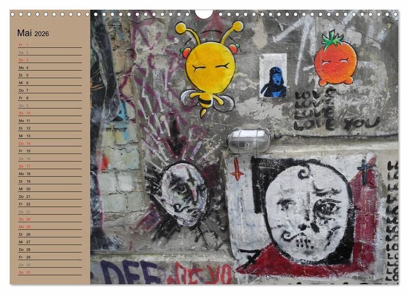 Dieser Kalender zeigt Fotos von Street-Art in Berlin: kreativ, bunt, sehenswert und inspirierend: für alle, die diese Kunstform lieben und für alle Fans von Berlin!