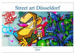 Street-Art, ist nichtkommerzielle zeitgenössische Kunst, die im öffentlichen Raum sichtbar ist. Die Werke entstehen sehr häufig illegal und anonym. Gestaltet werden von den Machern der Kunst, Flächen wie Wände, Maueren, Schilder, Stromverteilerkästen, Laternen, Verkehrsschilder, Telefonzellen, Mülleimer und andere Dinge im Urbanen Umfeld. Mein Kalender zeigt Fotografien aus der Kunstrichtung Street-Art in Düsseldorf. Bilder aus der Hall Of Fame in Düsseldorf-Eller zeigen Graffiti in kraftvollen Farben und beeindruckender Grösse der Düsseldorfer Graffiti Künstler.