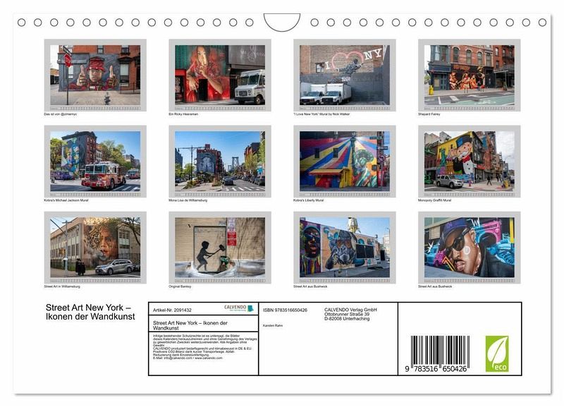 QUALITÄT - Hochwertiger Fotokalender mit 12 wunderschönen Motiven auf lichtbeständigem Bilderdruckpapier, robuste Spiralbindung mit Aufhängebügel.NACHHALTIG - deutliche Abfallreduzierung durch bedarfsgerechte Einzelstückfertigung, umweltfreundliches FSC-zertifiziertes Papier, Produktion in Deutschland, klimabewusste Logistik.PERFEKTES GESCHENK - Kalender für Freunde und Familie, für Kinder und Erwachsene, jungund alt, zu Weihnachten, Geburtstag oder zwischendurch.VIELFALT - Bildkalender in verschiedenen Formaten, z.B. DIN A5, DIN A4, DIN A3 sowie DIN A2. Ob Naturmotiv, Gemälde oder Fotos, ideal für ein persönliches Wohlfühlambiente.Street Art aus New York - Die Wände erzählen Geschichten von Autor(in): Karsten Rahn