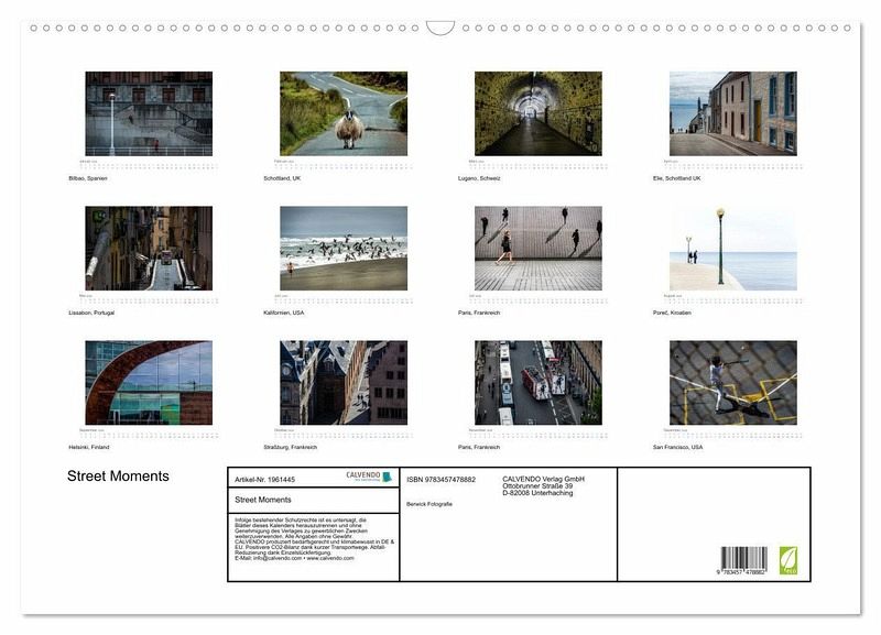 QUALITÄT - Hochwertiger Fotokalender mit 12 wunderschönen Motiven auf lichtbeständigem Bilderdruckpapier, robuste Spiralbindung mit Aufhängebügel.NACHHALTIG - deutliche Abfallreduzierung durch bedarfsgerechte Einzelstückfertigung, umweltfreundliches FSC-zertifiziertes Papier, Produktion in Deutschland, klimabewusste Logistik.PERFEKTES GESCHENK - Kalender für Freunde und Familie, für Kinder und Erwachsene, jung und alt, zu Weihnachten, Geburtstag oder zwischendurch.VIELFALT - Bildkalender in verschiedenen Formaten, z.B. DIN A5, DIN A4, DIN A3 sowie DIN A2. Ob Naturmotiv, Gemälde oder Fotos, ideal für ein persönliches Wohlfühlambiente.Lebendige Straßenszenen von Europa bis Amerika von Autor(in): BERWICK - Fotografie