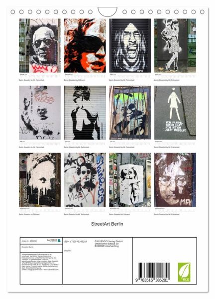 QUALITÄT - Hochwertiger Fotokalender mit 12 wunderschönen Motiven auf lichtbeständigem Bilderdruckpapier, robuste Spiralbindung mit Aufhängebügel.NACHHALTIG - deutliche Abfallreduzierung durch bedarfsgerechte Einzelstückfertigung, umweltfreundliches FSC-zertifiziertes Papier, Produktion in Deutschland, klimabewusste Logistik.PERFEKTES GESCHENK - Kalender für Freunde und Familie, für Kinder und Erwachsene, jung und alt, zu Weihnachten, Geburtstag oder zwischendurch.VIELFALT - Bildkalender in verschiedenen Formaten, z.B. DIN A5, DIN A4, DIN A3 sowie DIN A2. Ob Naturmotiv, Gemälde oder Fotos, ideal für ein persönliches Wohlfühlambiente.Die beste Street Art aus den Straßen Berlins von Autor(in): Sven Thiele