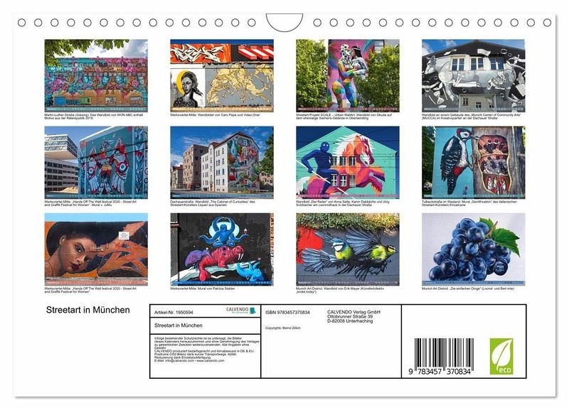 QUALITÄT - Hochwertiger Fotokalender mit 12 wunderschönen Motiven auf lichtbeständigem Bilderdruckpapier, robuste Spiralbindung mit Aufhängebügel.NACHHALTIG - deutliche Abfallreduzierung durch bedarfsgerechte Einzelstückfertigung, umweltfreundliches FSC-zertifiziertes Papier, Produktion in Deutschland, klimabewusste Logistik.PERFEKTES GESCHENK - Kalender für Freunde und Familie, für Kinder und Erwachsene, jung und alt, zu Weihnachten, Geburtstag oder zwischendurch.VIELFALT - Bildkalender in verschiedenen Formaten, z.B. DIN A5, DIN A4, DIN A3 sowie DIN A2. Ob Naturmotiv, Gemälde oder Fotos, ideal für ein persönliches Wohlfühlambiente.Graffiti und Wandmalerei in München von Autor(in): Bernd Zillich