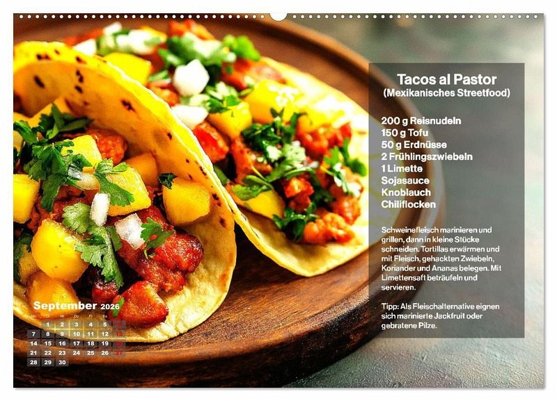 Entdecke die Vielfalt internationaler Street Food-Kultur in diesem einzigartigen Streetfood Kalender. Ob asiatische Gerichte wie Pad Thai oder südamerikanische Klassiker wie Arepas, dieser Kalender bietet einfache Rezepte für authentische Speisen aus der ganzen Welt. Lass dich von schnellen und einfachen Rezepten inspirieren und begib dich auf eine kulinarische Weltreise mit exotischen Speisen aus Japan, Vietnam, Argentinien und den USA. Perfekt für alle, die ein außergewöhnliches Kochbuch für die Küche suchen und in die Welt des Street Food Festivals eintauchen möchten. Fotos mit KI generiert.