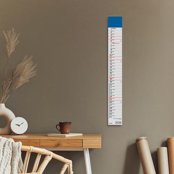 - Format: 11,4 x 89 cm; schmaler Wandkalender mit viel Platz für Termine und Datumsschieber