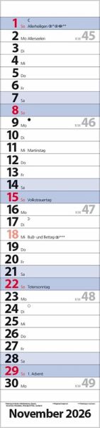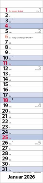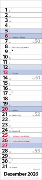 - Format: 11,8 x 50 cm; schmaler Wandkalender mit viel Platz für Termine