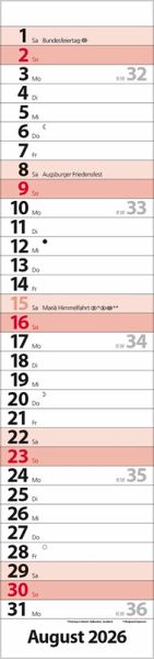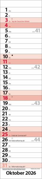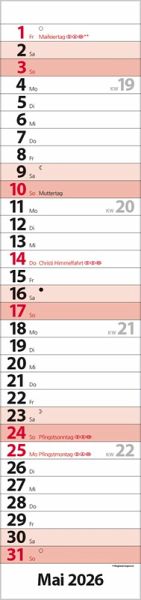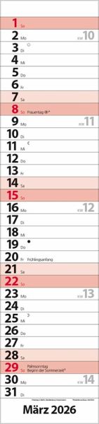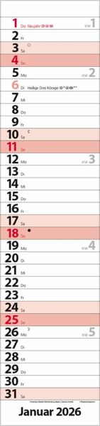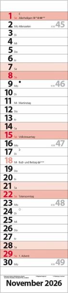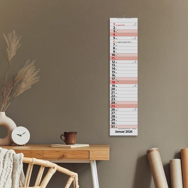 - Format: 11,8 x 50 cm; schmaler Wandkalender mit viel Platz für Termine