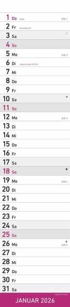 Praktischer Streifenkalender im Format 11,3 x 49,5 cm platzsparend & übersichtlich Modernes Pink-Design ideal für Küche, Büro, Flur oder Homeoffice Für Familien, Paare, Singles & Berufstätige geeignet FSC-zertifiziertes Papier aus nachhaltiger Forstwirtschaft Deutsches Kalendarium mit Feiertagen (DE/AT/CH) & Mondphasen Stabile Spiralbindung mit Aufhängevorrichtung für einfaches Umblättern Viel Platz für persönliche Notizen & Termine Auch als dekoratives und praktisches Geschenk geeignet