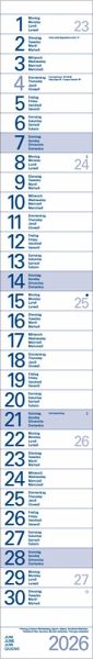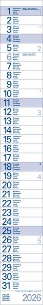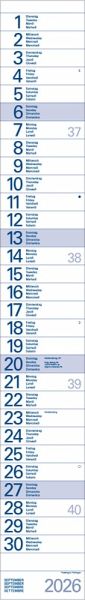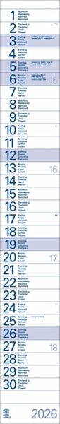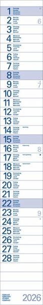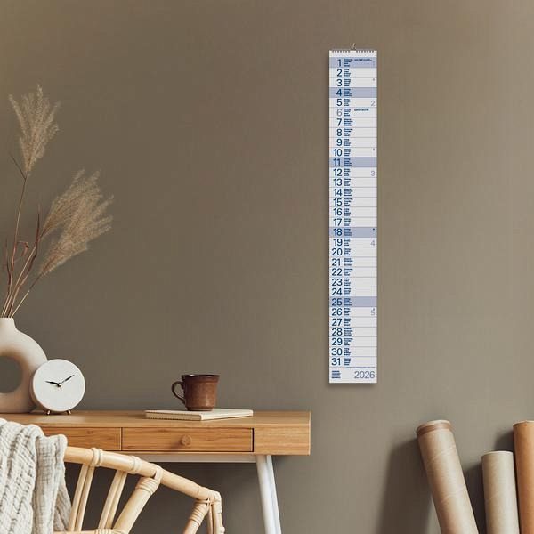 - Format: 10 x 70 cm; schmaler Wandkalender mit viel Platz für Termine