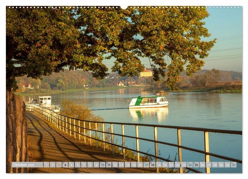 Oktober: Blick zur Fähre, Niederlommatzsch und Schloss Neuhischstein