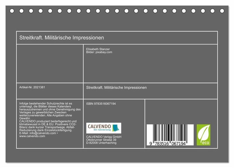QUALITÄT - Hochwertiger Fotokalender mit 12 wunderschönen Motiven auf lichtbeständigem Bilderdruckpapier, robuste Spiralbindung.NACHHALTIG - deutliche Abfallreduzierung durch bedarfsgerechte Einzelstückfertigung, umweltfreundliches FSC-zertifiziertes Papier, Produktion in Deutschland, klimabewusste Logistik.PERFEKTES GESCHENK - Kalender für Freunde und Familie, für Kinder und Erwachsene, jung und alt, zu Weihnachten, Geburtstag oder zwischendurch.VIELFALT - Bildkalender in verschiedenen Formaten, z.B. DIN A5, DIN A4, DIN A3 sowie DIN A2. Ob Naturmotiv, Gemälde oder Fotos, ideal für ein persönliches Wohlfühlambiente.Militärische Manöver und Streitkräfte der Moderne von Autor(in): Elisabeth Stanzer