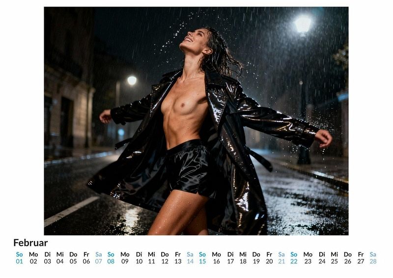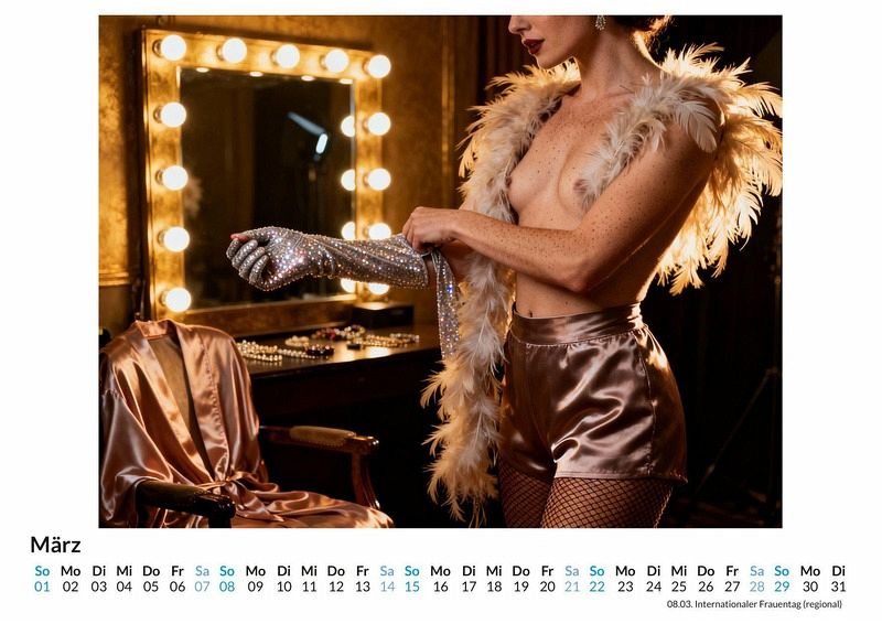Ein Hauch von Euphorie liegt in der Luft, wenn Stoffe fallen und die Ästhetik des Körpers in den Mittelpunkt rückt. Dieser Kalender fängt die Essenz des artistischen Ausziehens in zwölf ausdrucksstarken Szenen ein. Der Kalender ist eine passende Wahl für: Für Liebhaber der ästhetischen Erotik. Für Sammler von Kalendern, die eine provokante Note schätzen. Für Betrachter, die die Kunst des spielerischen Entkleidens bewundern. Der Kalender "Striptease" präsentiert eine Serie von Fotografien, die den Akt des Ausziehens als eine Form des künstlerischen Ausdrucks zelebrieren. Jeder Monat enthüllt eine neue Szene, in der die Freude an der Bewegung und die knisternde Spannung des Moments spürbar werden. Die Darstellungen sind freizügig, ohne dabei ihre stilvolle Ästhetik zu verlieren, und konzentrieren sich auf die Schönheit der Silhouetten und die Dynamik der Performance. Von fallenden Kleidern bis hin zu spielerischen Blicken wird die Geschichte des Entblößens erzählt. Diese einzigartigen Kompositionen wurden durch die kreative Kraft digitaler Algorithmen zum Leben erweckt und fangen eine Atmosphäre ein, die zugleich energetisch und sinnlich ist. Was der Kalender bietet: Zwölf Monatsblätter mit unterschiedlichen Motiven. Eine visuelle Reise durch die Kunst des Striptease. Ein Wandkalender zur Begleitung durch das Jahr. Der Kalender "Striptease" ist eine Hommage an die Kunst der Enthüllung und die euphorische Energie, die dabei freigesetzt wird. Jedes Bild erzählt eine eigene kleine Geschichte der Verführung. Es lohnt sich, einen Blick auf die einzelnen Monatsmotive zu werfen.