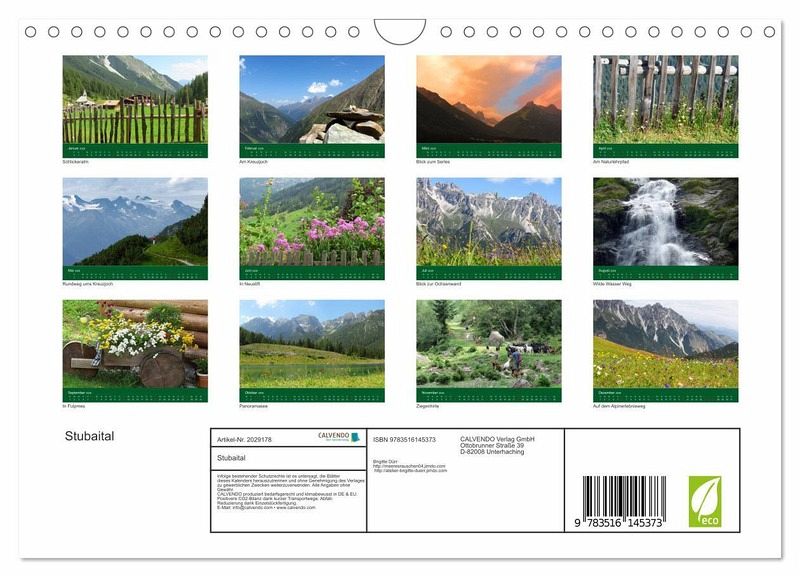 QUALITÄT - Hochwertiger Fotokalender mit 12 wunderschönen Motiven auf lichtbeständigem Bilderdruckpapier, robuste Spiralbindung mit Aufhängebügel.NACHHALTIG - deutliche Abfallreduzierung durch bedarfsgerechte Einzelstückfertigung, umweltfreundliches FSC-zertifiziertes Papier, Produktion in Deutschland, klimabewusste Logistik.PERFEKTES GESCHENK - Kalender für Freunde und Familie, für Kinder und Erwachsene, jung und alt, zu Weihnachten, Geburtstag oder zwischendurch.VIELFALT - Bildkalender in verschiedenen Formaten, z.B. DIN A5, DIN A4, DIN A3 sowie DIN A2. Ob Naturmotiv, Gemälde oder Fotos, ideal für ein persönliches Wohlfühlambiente.Berge, Alpenblumen, Wanderungen im sommerlichen Stubaital von Autor(in): Brigitte Dürr