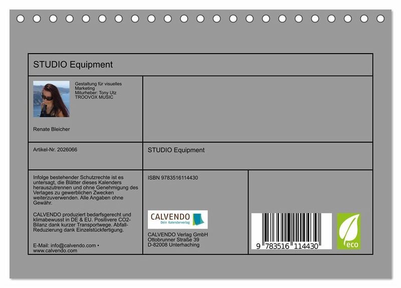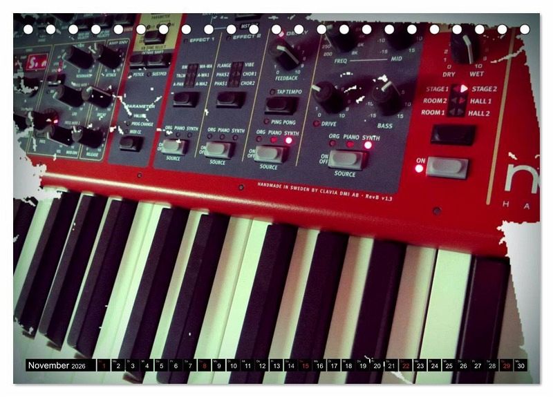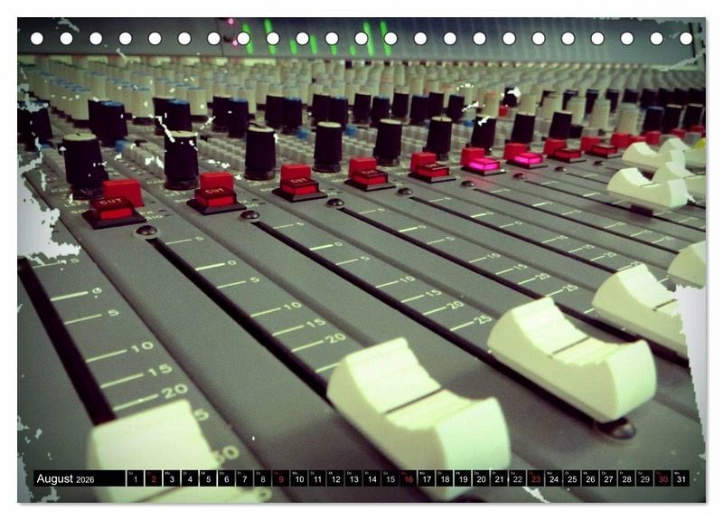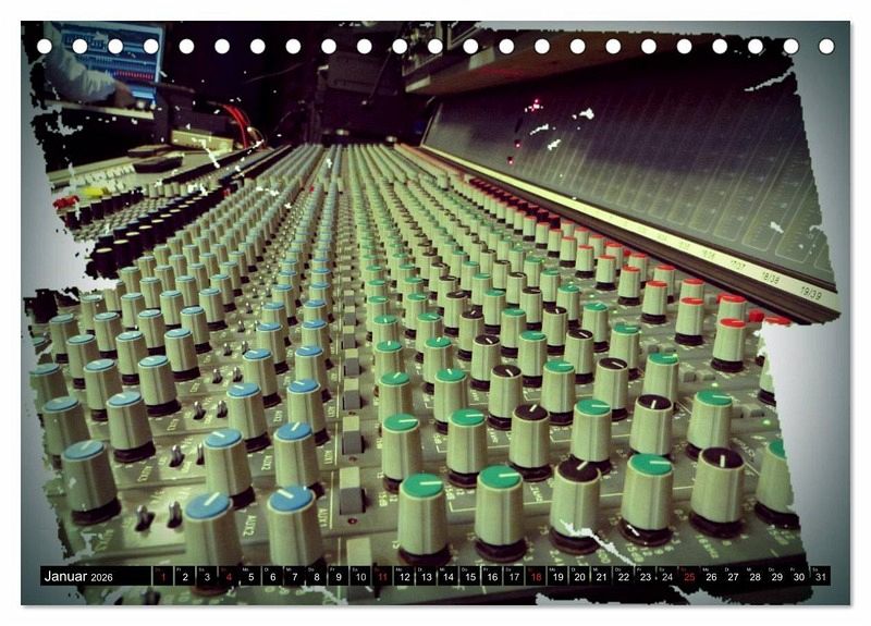 Von der Soundtechnik bis zum Musikinstrument sind hier Gerätschaften, die in einem Tonstudio gebraucht werden, dargestellt. Durch interessante Farbeffekte, werden auch Fotos von grauer Technik zu wahren Kunstwerken. Der passende Kalender für alle Musikinteressierten.