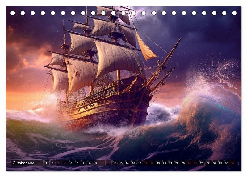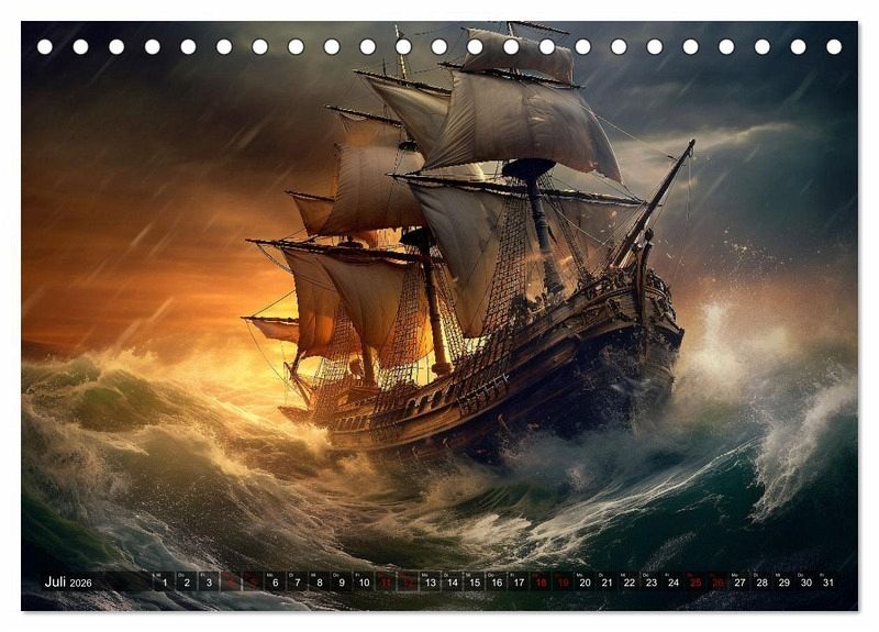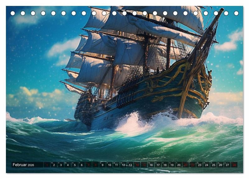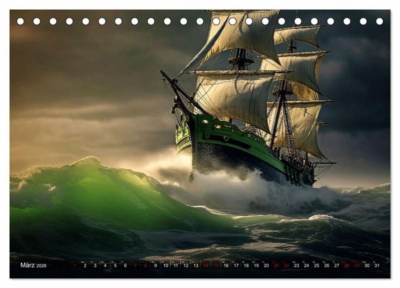 Haben wir nicht als Kind Piratenfilme geliebt und haben es genossen, die schönen Schiffe in Großaufnahmen zu sehen? Leider war die Szene dann immer schnell weg und es ging zur Handlung über. Der verbliebenen Sehnsucht kann dieser Kalender Abhilfe leisten. Zwölf wunderschöne - wenn auch fantasievolle - Segelschiffe in wilden, farbenfrohen Wettern auf lichtdurchfluteten Wellen. Das verspricht Genuss ein ganzes Jahr lang. Es mag das eine oder andere Detail nicht realistisch sein, doch der Gesamteindruck einer wilden Piratenjagd verzaubert den Betrachter.