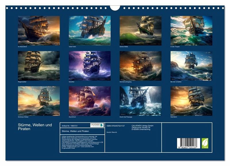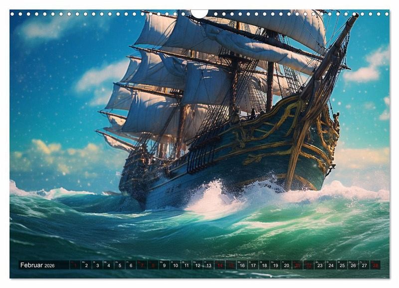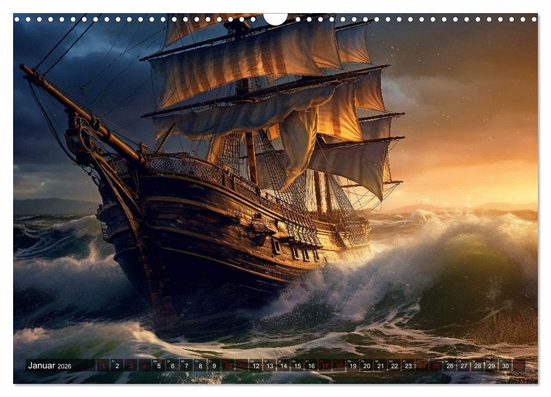 Haben wir nicht als Kind Piratenfilme geliebt und haben es genossen, die schönen Schiffe in Großaufnahmen zu sehen? Leider war die Szene dann immer schnell weg und es ging zur Handlung über. Der verbliebenen Sehnsucht kann dieser Kalender Abhilfe leisten. Zwölf wunderschöne - wenn auch fantasievolle - Segelschiffe in wilden, farbenfrohen Wettern auf lichtdurchfluteten Wellen. Das verspricht Genuss ein ganzes Jahr lang. Es mag das eine oder andere Detail nicht realistisch sein, doch der Gesamteindruck einer wilden Piratenjagd verzaubert den Betrachter.