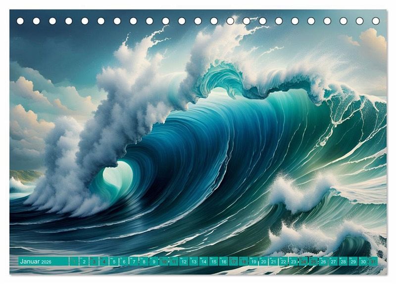 Tauchen Sie ein in die kraftvolle Welt der stürmischen Meereswellen mit unserem einzigartigen Kalender, erschaffen mit der Kraft künstlicher Intelligenz.
