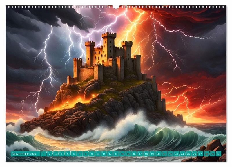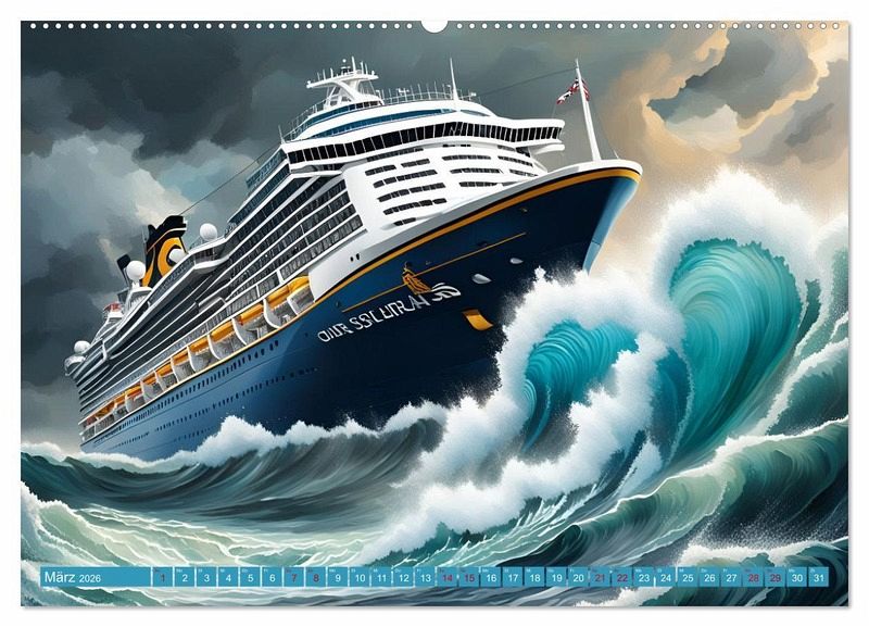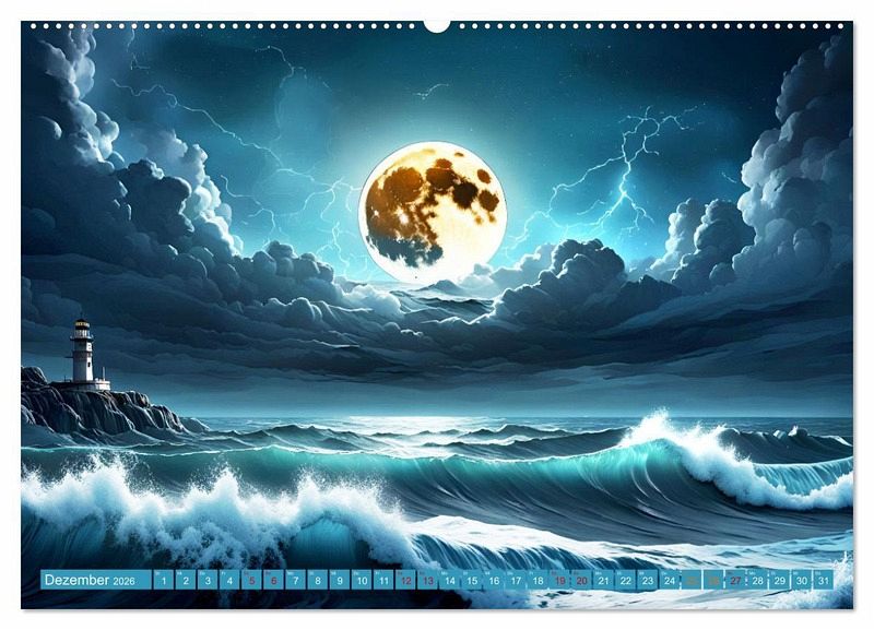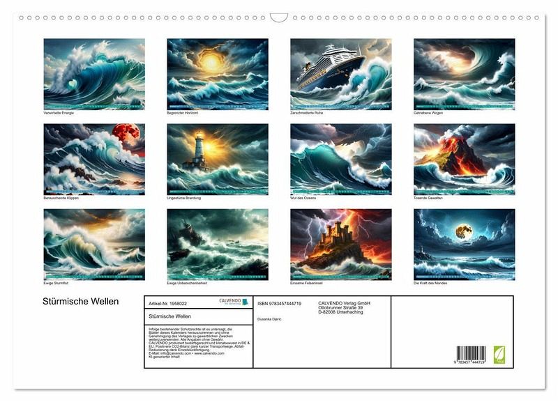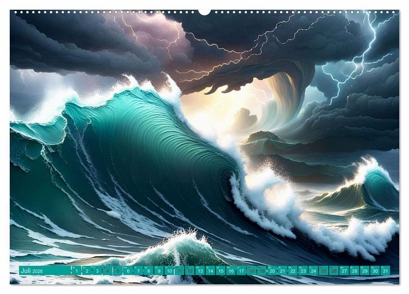 Tauchen Sie ein in die kraftvolle Welt der stürmischen Meereswellen mit unserem einzigartigen Kalender, erschaffen mit der Kraft künstlicher Intelligenz.