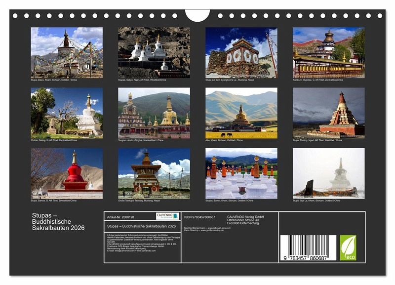 QUALITÄT - Hochwertiger Fotokalender mit 12 wunderschönen Motiven auf lichtbeständigem Bilderdruckpapier, robuste Spiralbindung mit Aufhängebügel.NACHHALTIG - deutliche Abfallreduzierung durch bedarfsgerechte Einzelstückfertigung, umweltfreundliches FSC-zertifiziertes Papier, Produktion in Deutschland, klimabewusste Logistik.PERFEKTES GESCHENK - Kalender für Freunde und Familie, für Kinder und Erwachsene, jung und alt, zu Weihnachten, Geburtstag oder zwischendurch.VIELFALT - Bildkalender in verschiedenen Formaten, z.B. DIN A5, DIN A4, DIN A3 sowie DIN A2. Ob Naturmotiv, Gemälde oder Fotos, ideal für ein persönliches Wohlfühlambiente.Ein Kalender, der buddhistische Sakralbauten in der Himalaya-Region zeigt von Autor(in): Manfred Bergermann