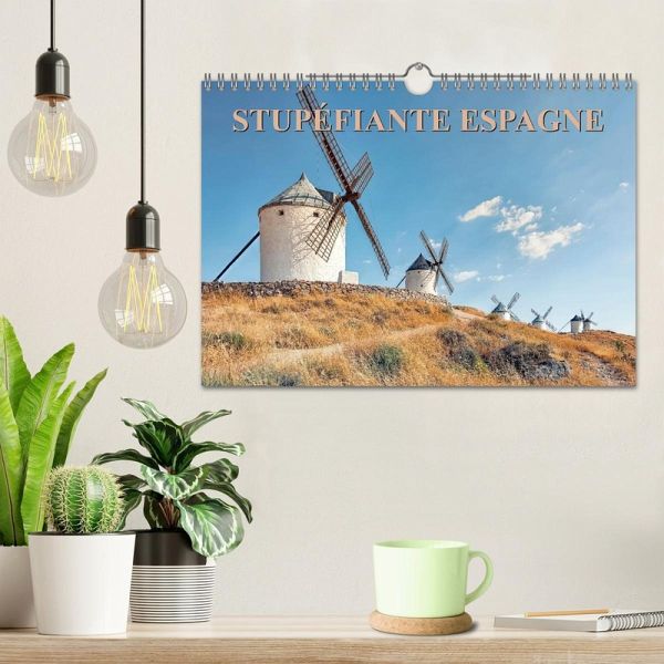 La mythique Barcelone, l'incontournable Madrid, le charme des moulins à vent de La Mancha et les splendeurs architecturales de l'Andalousie dans ce somptueux calendrier photo.