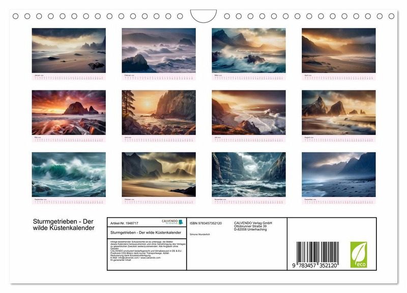 Erlebe die wilde Schönheit der Natur mit unserem einzigartigen, von KI erstellten Kalender! Jeder Monat enthüllt handverlesene Kunstwerke, die die kraftvolle Symbiose von Sturm und Küste einfangen. Ein Jahr voller Meereszauber erwartet dich - hol die jetzt deinen exklusiven Kalender und spüre die Energie der Meeresgewalten!