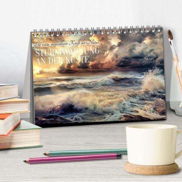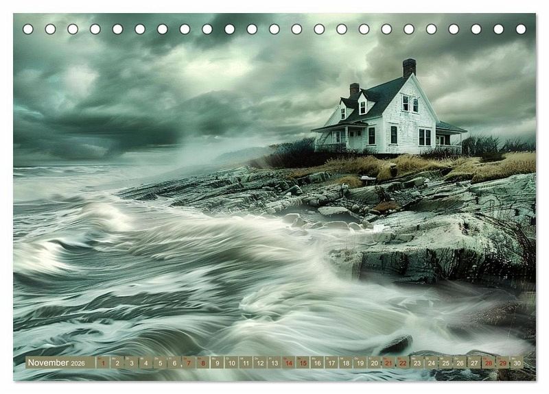 Entdecken Sie die ungestüme, raue Schönheit der Küstenlandschaften, die besonders während eines Sturms in ihrer ganzen Pracht zum Vorschein kommt. Die gewaltigen Wellen, die gegen die Küstenlinie schlagen, der starke Wind, der über das Land fegt, und der dunkle, wolkenverhangene Himmel, sind ein beeindruckendes Naturschauspiel. Es ist eine Erinnerung an die ungezähmte Kraft der Natur, die sowohl furchteinflößend als auch faszinierend ist. Ideal für Liebhaber der Meereslandschaften, Kunstbegeisterte und alle, die das Besondere suchen. Lassen Sie sich Monat für Monat von der Kreativität einer KI inspirieren und finden Sie Ruhe in den stürmischen Zeiten.