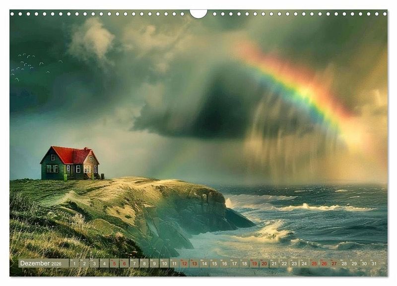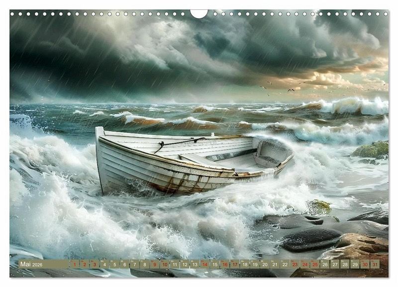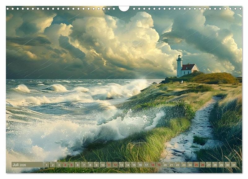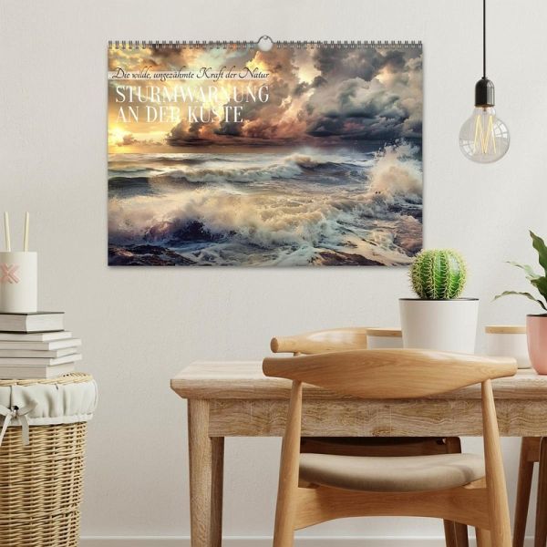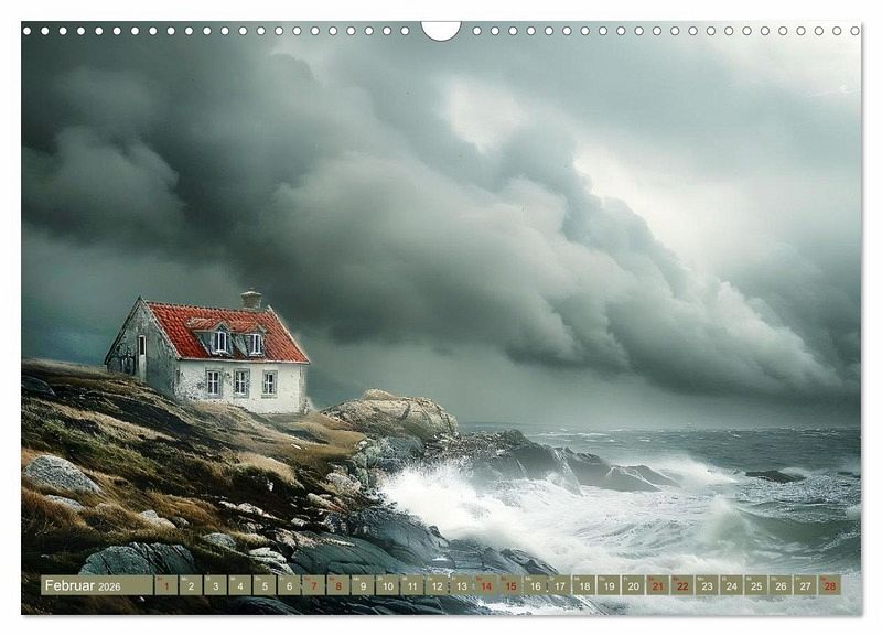 Entdecken Sie die ungestüme, raue Schönheit der Küstenlandschaften, die besonders während eines Sturms in ihrer ganzen Pracht zum Vorschein kommt. Die gewaltigen Wellen, die gegen die Küstenlinie schlagen, der starke Wind, der über das Land fegt, und der dunkle, wolkenverhangene Himmel, sind ein beeindruckendes Naturschauspiel. Es ist eine Erinnerung an die ungezähmte Kraft der Natur, die sowohl furchteinflößend als auch faszinierend ist. Ideal für Liebhaber der Meereslandschaften, Kunstbegeisterte und alle, die das Besondere suchen. Lassen Sie sich Monat für Monat von der Kreativität einer KI inspirieren und finden Sie Ruhe in den stürmischen Zeiten.