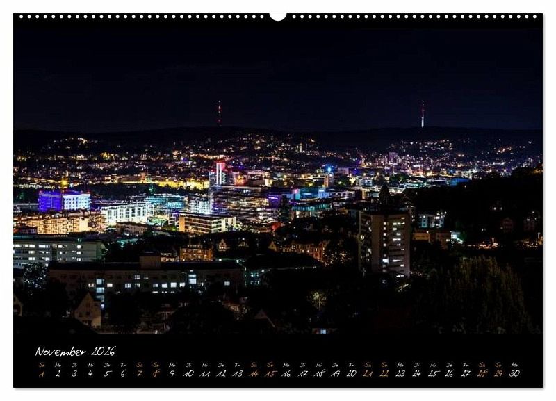 Ein Kalender mit 12 farbenprächtigen Panoramafotos von den schönsten Stuttgarter Orten. Ein dutzend prächtige Ansichten von der nächtliche Skyline über den frühmorgentlichen Schlossplatz bis hin zum Sternenhimmel über der Solitude.