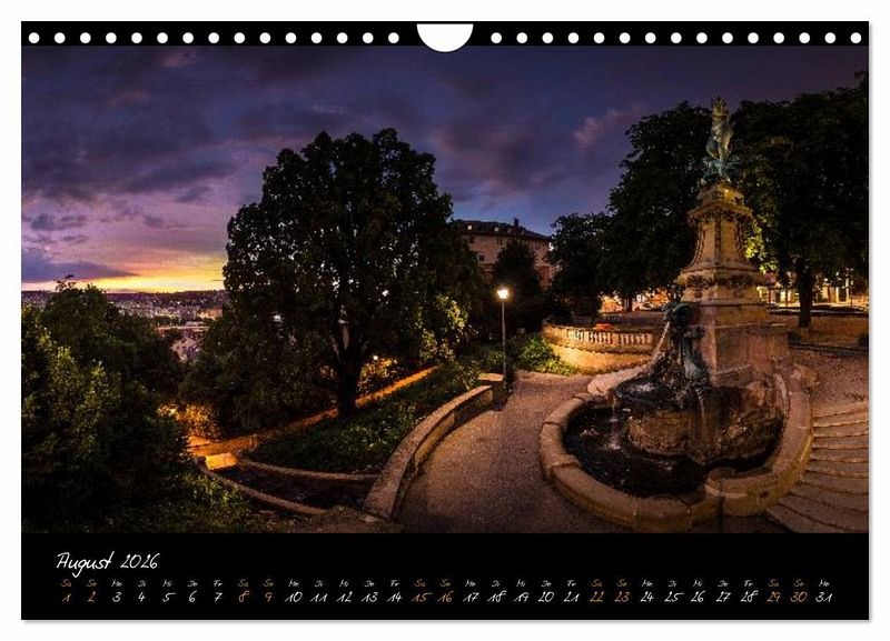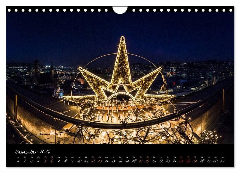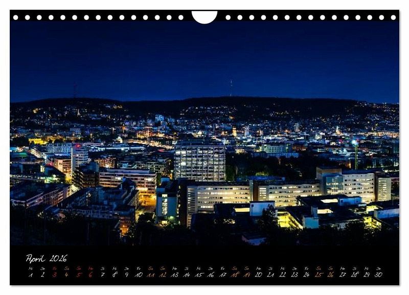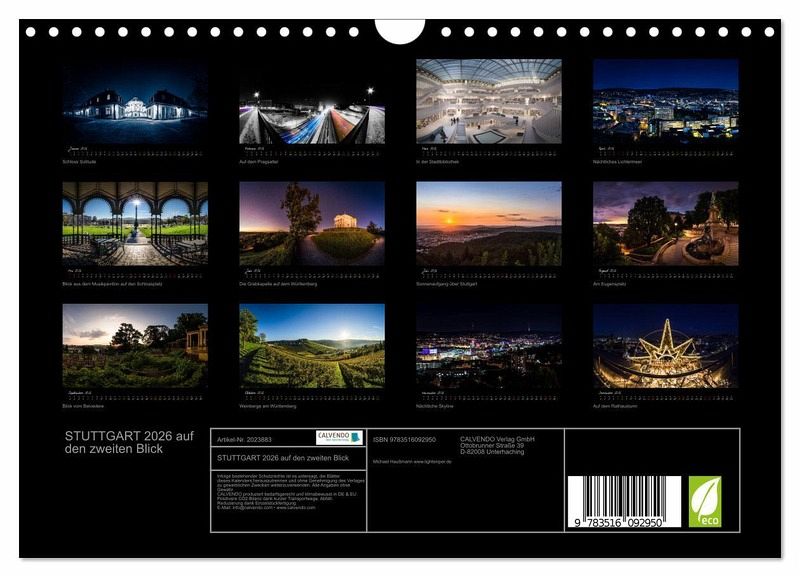 Ein Kalender mit 12 farbenprächtigen Panoramafotos von den schönsten Stuttgarter Orten. Ein dutzend prächtige Ansichten von der nächtliche Skyline über den frühmorgentlichen Schlossplatz bis hin zum Sternenhimmel über der Solitude.