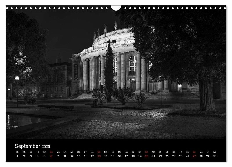 Der Kalender "Stuttgart bei Nacht" zeigt die Landeshauptstadt Baden-Württembergs in einem ganz besonderen Licht. Auf seinen nächtlichen Streifzügen durch Stuttgart, sammelte der Fotograf Colin Utz eindrucksvolle Schwarzweißfotografien von bekannten Stuttgarter Sehenswürdigkeiten, wie das Neue Schloss, die Neue Staatsgalerie, das Opernhaus, und viele mehr.