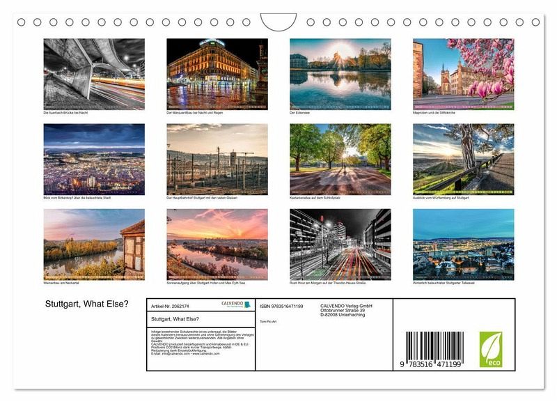 Jeder Monat präsentiert ein exklusives Motiv - vom Sonnenaufgang im Neckartal bis zur nächtlichen Skyline über der Stadt. Überraschende Perspektiven, stimmungsvolle Aufnahmen und echte Liebeserklärungen an die Stadt machen diesen Kalender zum perfekten Begleiter durch das Jahr.