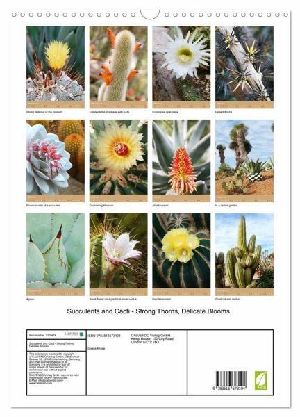 QUALITY - High-quality photo calendar with 12 beautiful images on light-resistant paper, robust spiral binding with hanger.SUSTAINABLE - Significant waste reduction due to print-on-demand production, environmentally friendly FSC-certified paper, produced in the UK, climate-conscious logistical processes.PERFECT GIFT - calendars for friends and family, for children, all ages and all occasions, from Christmas to birthdays and everything in between.LOTS OF CHOICE - Wall calendars in different sizes (DIN A4 and DIN A3), for any topic and personal taste, featuring photography, painting and illustrations.A look at the beauty of thorny sun worshippers, author: Gisela Kruse