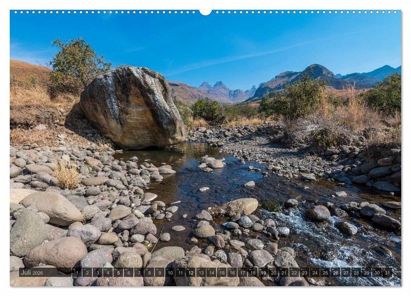 Juli: Flusslauf in den Drakensbergen, Provinz KwaZulu-Natal