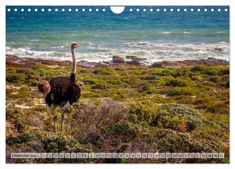 12 farbstarke Aufnahmen entführen Sie das ganze Jahr über nach Südafrika an das Kap der Guten Hoffnung. Sie sehen Kapstadt mit seinem bunten Stadtteil Bo-Kaap und dem Tafelberg, die Cape Winelands mit Stellenbosch und dem romantischen Hugenottendorf Franschhoek und die beeindruckende Fauna Afrikas.