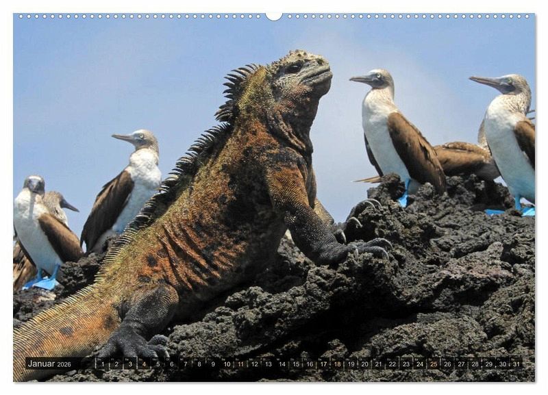 Januar: Meerechse & Blaufusstölpel, Galapagos, Ecuador