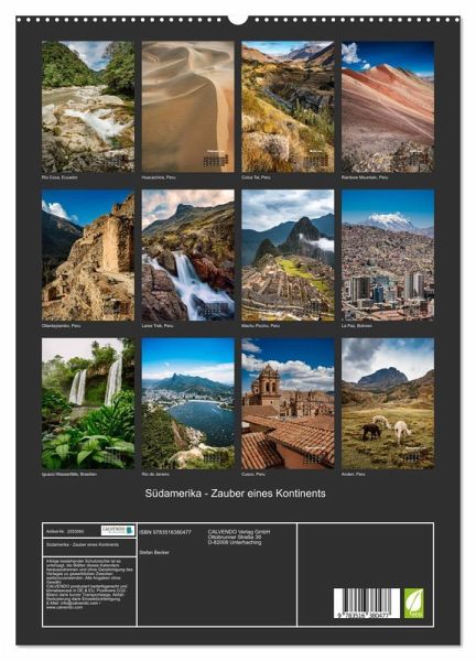 PREMIUM-LINIE - Brillanter Fotokalender mit 12 wunderschönen Motiven, Kunstdruck in Hochglanz in Museumsqualität.QUALITÄT - edle Materialien, stabile Rückwand mit 2 innovativen Einstecktaschen für eine optimale Präsentation an der Wand.NACHHALTIG - deutliche Abfallreduzierung durch bedarfsgerechte Einzelstückfertigung, umweltfreundliches FSC-zertifiziertes Papier, Produktion in Deutschland, klimabewusste Logistik.PERFEKTES GESCHENK - Kalender für Freunde und Familie, für Kinder und Erwachsene, jung und alt, zu Weihnachten, Geburtstag oder zwischendurch.Von den Anden bis nach Rio de Janeiro von Autor(in): Stefan Becker