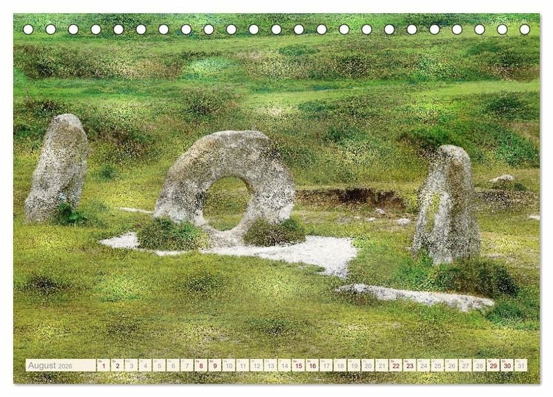 Von den ehrwürdigen Kreisen in Avebury bis zu den geheimnisvollen Formationen von Dartmoor, Cheesewrings und den stillen Rhapsodien von Silbury Hill und West Kennet Long Barrow führt dieser Kalender durch eine Welt uralter Steinformationen und poetischer Landschaften. Jede Seite erzählt eine Geschichte aus der Vergangenheit, eingefangen in atemberaubender Fotografie und verlässlichem Kalendarium für Termine, Ferien und Inspiration. Tauchen Sie ein in eine Welt aus Geschichte, Archäologie und naturgewaltiger Schönheit - jeden Monat ein neues Kapitel Südenglands.