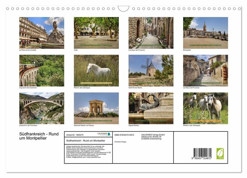 QUALITÄT - Hochwertiger Fotokalender mit 12 wunderschönen Motiven auf lichtbeständigem Bilderdruckpapier, robuste Spiralbindung mit Aufhängebügel.NACHHALTIG - deutliche Abfallreduzierung durch bedarfsgerechte Einzelstückfertigung, umweltfreundliches FSC-zertifiziertes Papier, Produktion in Deutschland, klimabewusste Logistik.PERFEKTES GESCHENK - Kalender für Freunde und Familie, für Kinder und Erwachsene, jung und alt, zu Weihnachten, Geburtstag oder zwischendurch.VIELFALT - Bildkalender in verschiedenen Formaten, z.B. DIN A5, DIN A4, DIN A3 sowie DIN A2. Ob Naturmotiv, Gemälde oder Fotos, ideal für ein persönliches Wohlfühlambiente.Der Süden Frankreich mitten in der Provence bei Montpellier von Autor(in): Christine Wirges