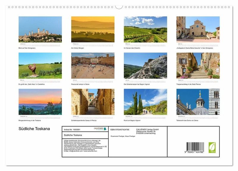 PREMIUM-LINIE - Brillanter Fotokalender mit 12 wunderschönen Motiven, Kunstdruck in Hochglanz in Museumsqualität.QUALITÄT - edle Materialien, stabile Rückwand mit 2 innovativen Einstecktaschen für eine optimale Präsentation an der Wand.NACHHALTIG - deutliche Abfallreduzierung durch bedarfsgerechte Einzelstückfertigung, umweltfreundliches FSC-zertifiziertes Papier, Produktion in Deutschland, klimabewusste Logistik.PERFEKTES GESCHENK - Kalender für Freunde und Familie, für Kinder und Erwachsene, jung und alt, zu Weihnachten, Geburtstag oder zwischendurch.Die Toskana ist ein traumhaftes Wandergebiet. von Autor(in): Rosemarie Prediger