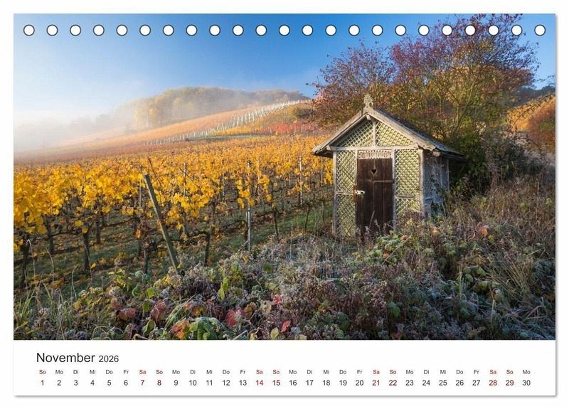 Lassen Sie sich durch alle Jahreszeiten begleiten: blühende Rebhänge im Frühling, sonnendurchflutete Weinberge im Sommer, goldenes Herbstlaub und stille Winterimpressionen. Jede Aufnahme fängt die besondere Atmosphäre dieser einzigartigen Region ein und macht den Kalender zu einem Schmuckstück für jede Wand.