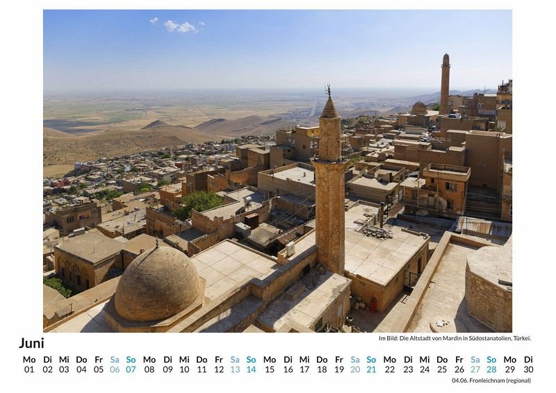 Entdecken Sie die faszinierende Schönheit Südostanatoliens mit unserem exklusiven Wandkalender! Lassen Sie sich Monat für Monat von atemberaubenden Landschaften, historischen Stätten und der einzigartigen Kultur dieser Region verzaubern. Jedes der 12 sorgfältig ausgewählten Motive wurde auf hochwertigem, lichtbeständigem Bilderdruckpapier gedruckt, um Ihnen das ganze Jahr über brillante Farben und Details zu bieten. Gedruckt in Deutschland auf FSC-zertifiziertem Papier, vereint dieser Kalender Nachhaltigkeit und höchste Qualität. Holen Sie sich ein Stück Türkei nach Hause und lassen Sie sich täglich inspirieren - perfekt für Ihr Zuhause oder als Geschenk! Hochwertig Erleben Sie ein Jahr voller Eleganz mit unserem Premium-Fotokalender. Jedes der 12 Motive ist auf hochwertigem, lichtbeständigem Bilderdruckpapier gedruckt, um die Lebendigkeit jedes Bildes zu bewahren. Die robuste Spiralbindung gewährleistet Langlebigkeit und einfache Handhabung. Nachhaltig Unser Engagement für die Umwelt spiegelt sich in jedem Exemplar wider. Durch die Produktion auf Abruf reduzieren wir signifikant unseren Abfall. Wir verwenden ausschließlich umweltfreundliches, FSC-zertifiziertes Papier. Stolz gefertigt in Deutschland, achten wir bei unserer Logistik auf Klimaschutz, um unseren ökologischen Fußabdruck zu minimieren. Das ideale Geschenk Dieser Kalender ist das perfekte Präsent für jeden Anlass - ob Weihnachten, Geburtstage oder einfach als liebevolle Aufmerksamkeit zwischendurch. Geeignet für Freunde, Familie, Kinder und Erwachsene gleichermaßen, bereichert er jedes Zuhause mit seiner Vielfalt und Schönheit, unabhängig vom Alter der Beschenkten.