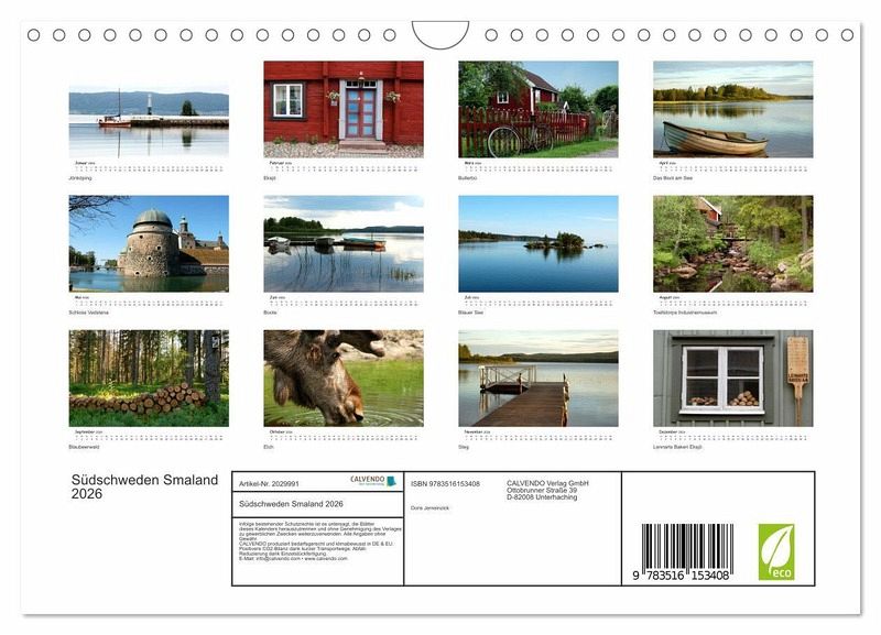 Schöne Eindrücke aus dem Smaland werden festgehalten in diesem Fotokalender. Empfehlenswert für alle Liebhaber der südschwedischen Seenlandschaft.