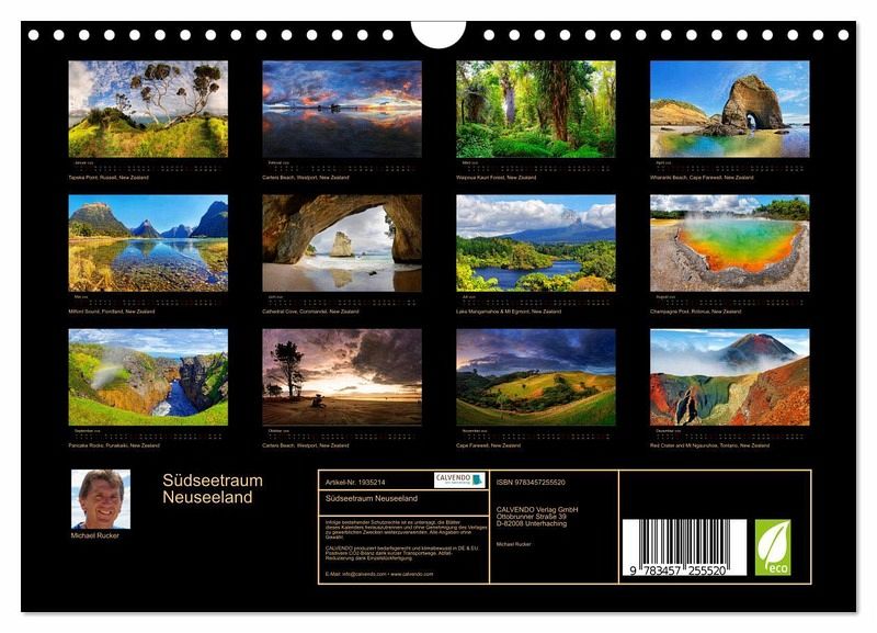 QUALITÄT - Hochwertiger Fotokalender mit 12 wunderschönen Motiven auf lichtbeständigem Bilderdruckpapier, robuste Spiralbindung mit Aufhängebügel.NACHHALTIG - deutliche Abfallreduzierung durch bedarfsgerechte Einzelstückfertigung, umweltfreundliches FSC-zertifiziertes Papier, Produktion in Deutschland, klimabewusste Logistik.PERFEKTES GESCHENK - Kalender für Freunde und Familie, für Kinder und Erwachsene, jung und alt, zu Weihnachten, Geburtstag oder zwischendurch.VIELFALT - Bildkalender in verschiedenen Formaten, z.B. DIN A5, DIN A4, DIN A3 sowie DIN A2. Ob Naturmotiv, Gemälde oder Fotos, ideal für ein persönliches Wohlfühlambiente.Neuseelands traumhafte Landschaften und Einblicke von Autor(in): Michael Rucker