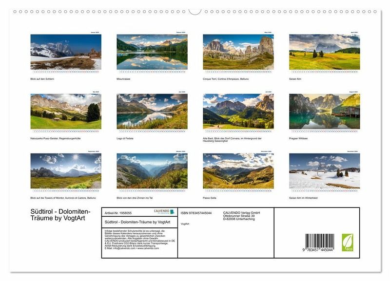 PREMIUM-LINIE - Brillanter Fotokalender mit 12 wunderschönen Motiven, Kunstdruck in Hochglanz in Museumsqualität.QUALITÄT - edle Materialien, stabile Rückwand mit 2 innovativen Einstecktaschen für eine optimale Präsentation an der Wand.NACHHALTIG - deutliche Abfallreduzierung durch bedarfsgerechte Einzelstückfertigung, umweltfreundliches FSC-zertifiziertes Papier, Produktion in Deutschland, klimabewusste Logistik.PERFEKTES GESCHENK - Kalender für Freunde und Familie, für Kinder und Erwachsene, jung und alt, zu Weihnachten, Geburtstag oder zwischendurch.Wanderparadies Dolomiten UNESCO Welterbe von Autor(in): VogtArt