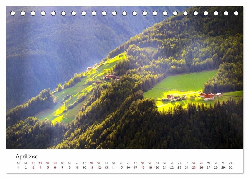 Bestaunen Sie 12 eindrucksvolle Aufnahmen aus Südtirol, Italien. Tauchen Sie mit diesen Aufnahmen in eine wundervolle Bilderkulisse ein. Holen Sie sich das Südtirol-Feeling direkt nach Hause. Lassen Sie sich jedes Monat von einem weiteren unfassbaren Motiv überraschen.